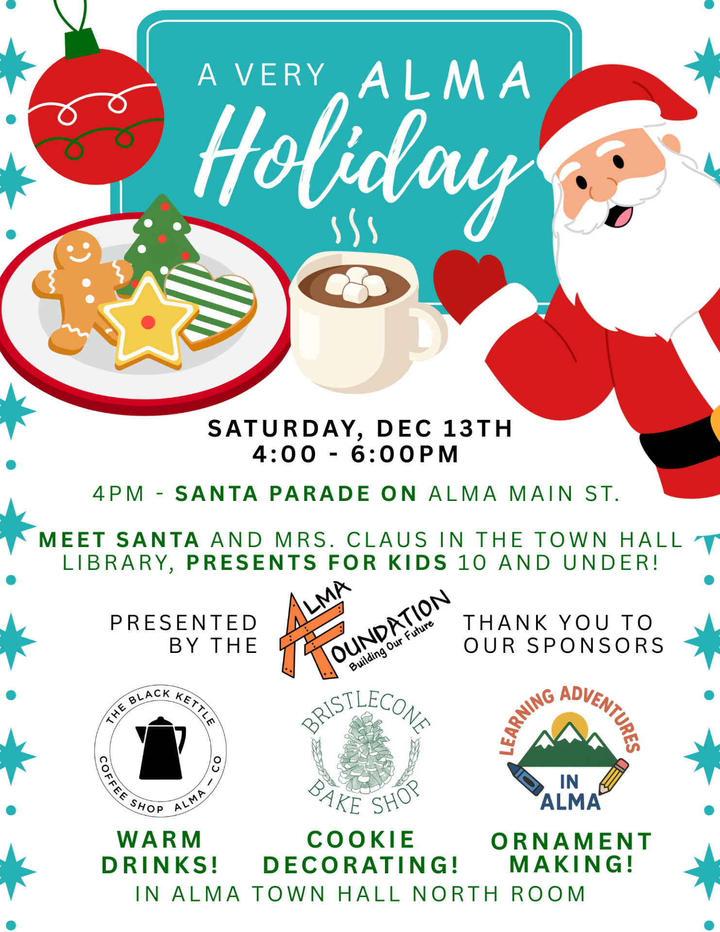 Please plan to attend our monthly public meeting, usually on the final Tuesday of every month at 6PM, in the Alma Town Hall North Room, to speak with the Alma Foundation board about putting your idea into action.